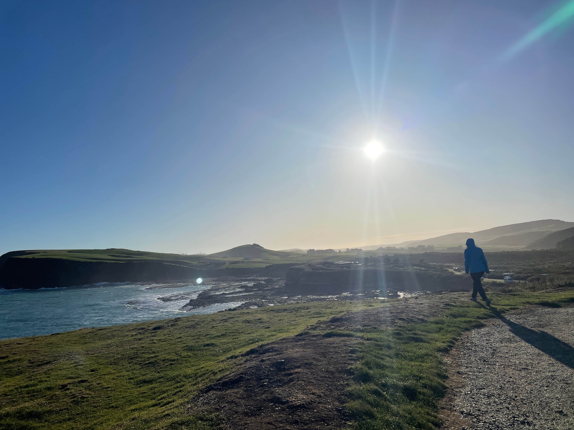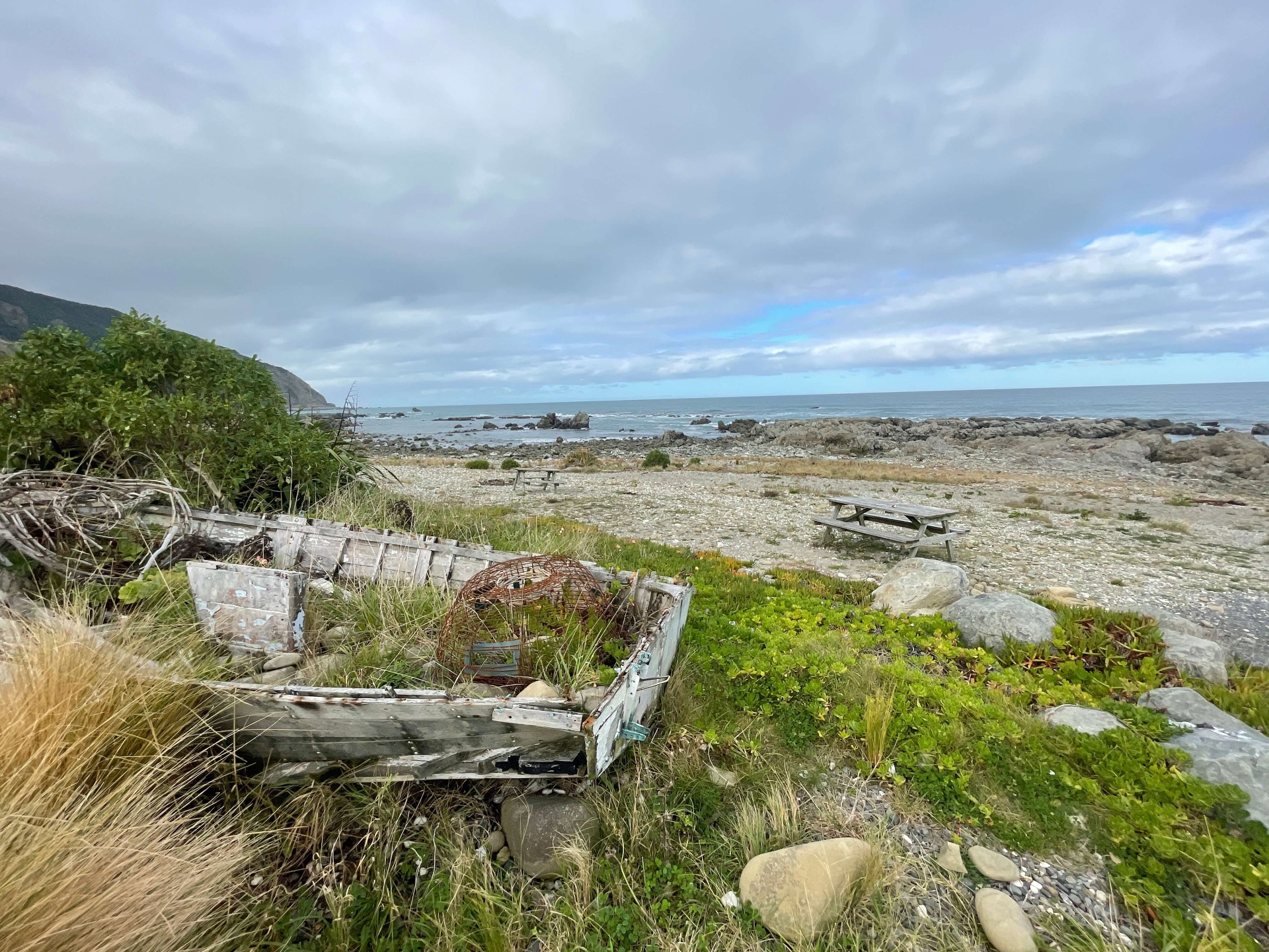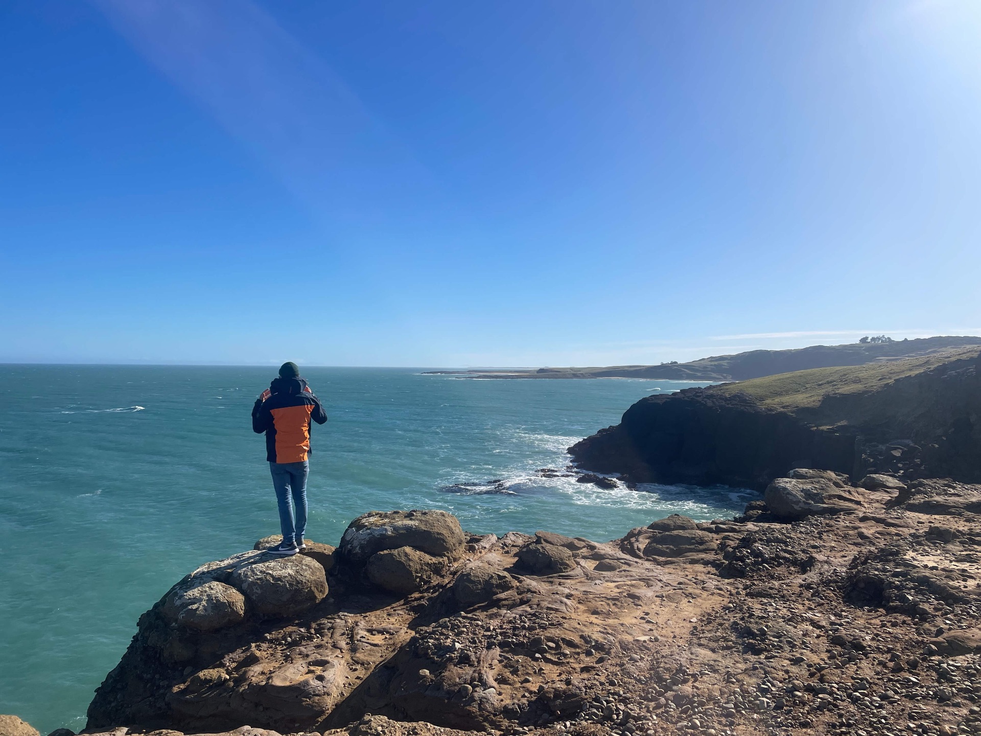 Nach diesem gelungenen Abend und einer viel zu kurzen Zeit im Airbnb ging es mit unseren Autos schon wieder weiter zu unserem nächsten Stopp nach Dunedin. Nach einem wetterbedingt nur kurzen Stopp begaben wir uns gleich in der Früh am nächsten Tag weiter zum Nugget- und anschließend zum Slope Point. Einer der wenigen schönen Tage musste ausgenutzt werden. Für den Abend quartierten wir uns auf einem Campingplatz in der Curio Bay ein. Dort sollten nämlich Pinguine und Delfine zu sehen sein. Wir hatten leider kein Glück und konnten nur ein paar Delfine aus der Ferne erahnen. Die Anlage war aber trotzdem sehr schön und wir genossen gemeinsam die langersehnten Sonnenstrahlen.